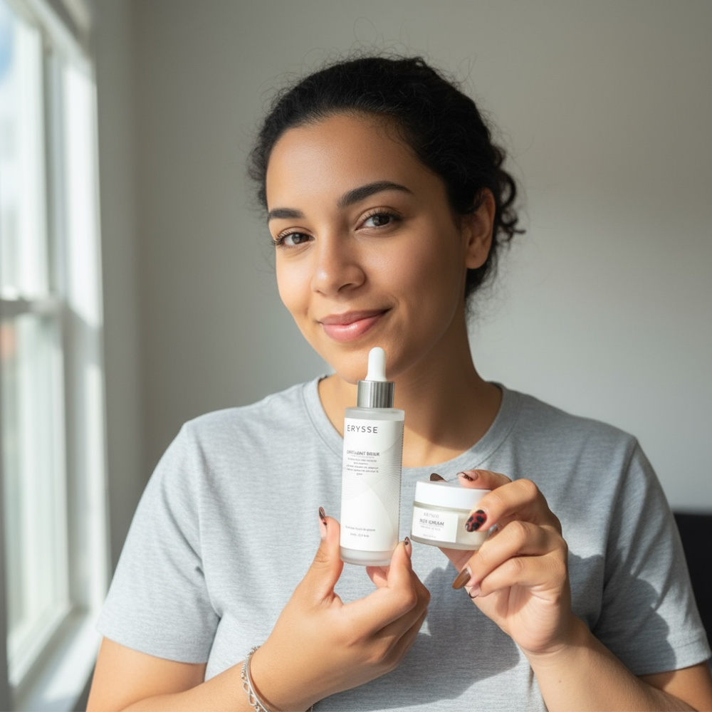 Avec une utilisation régulière, les taches et irrégularités s’estompent progressivement, révélant un teint plus uniforme et lumineux.