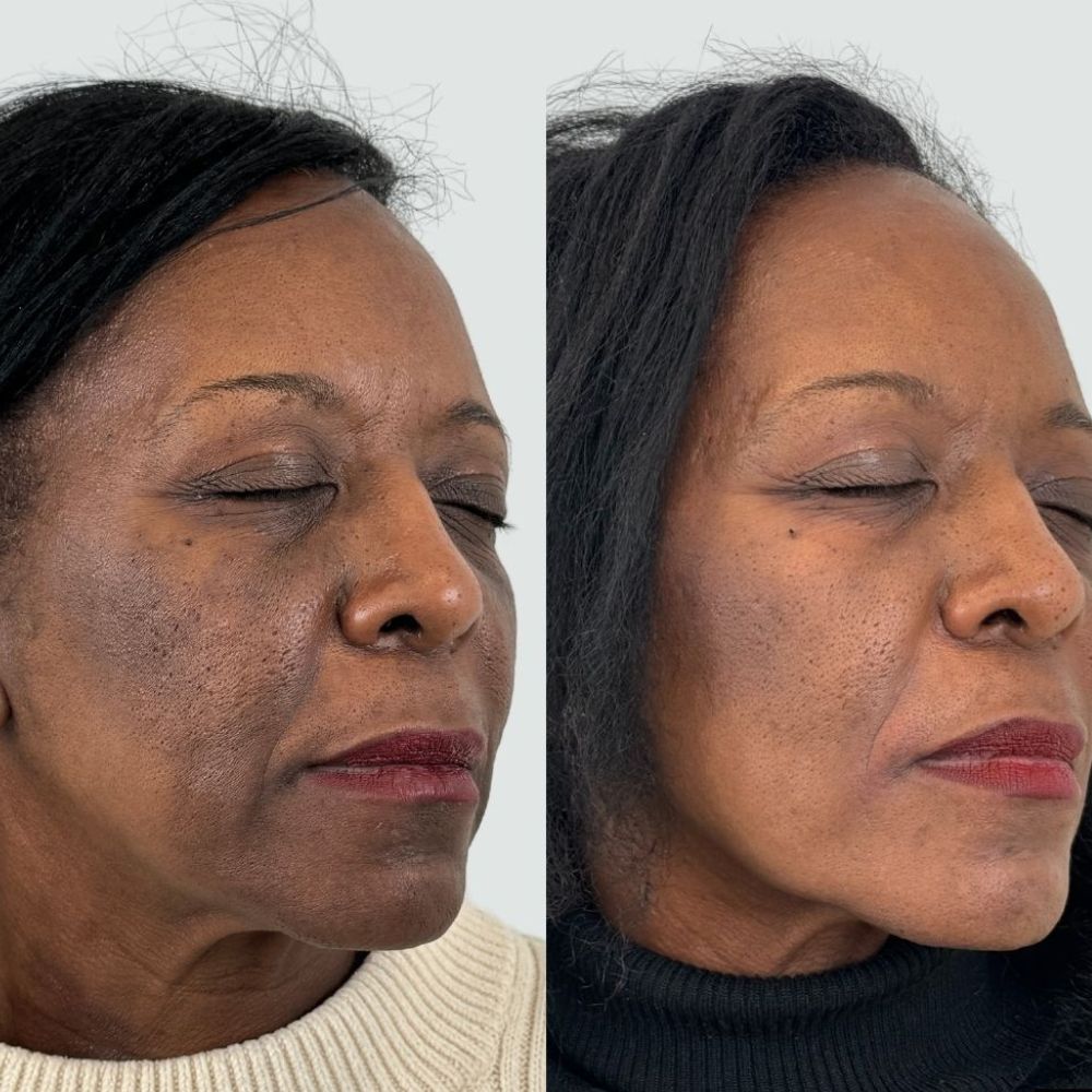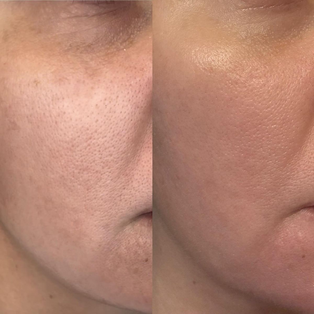Ont observé des pores moins visibles et un grain de peau visiblement plus net