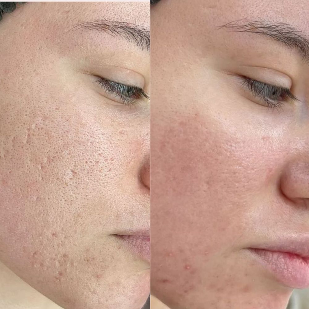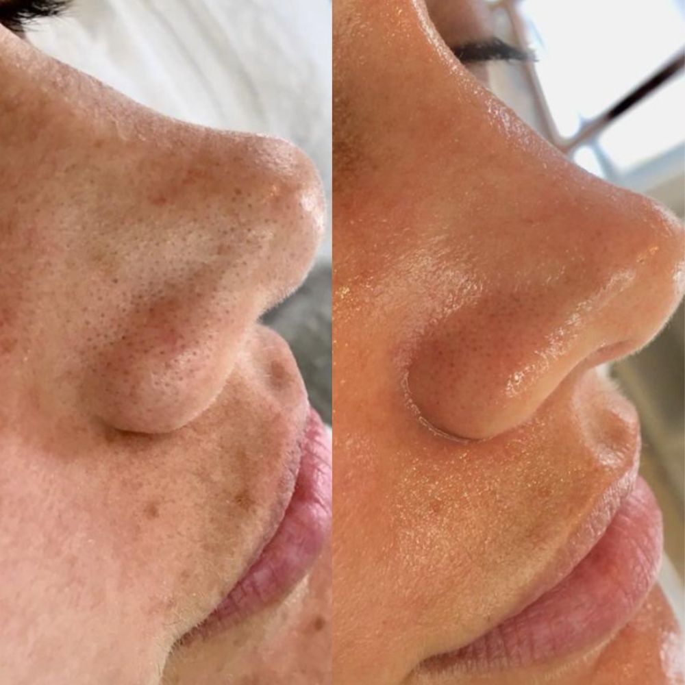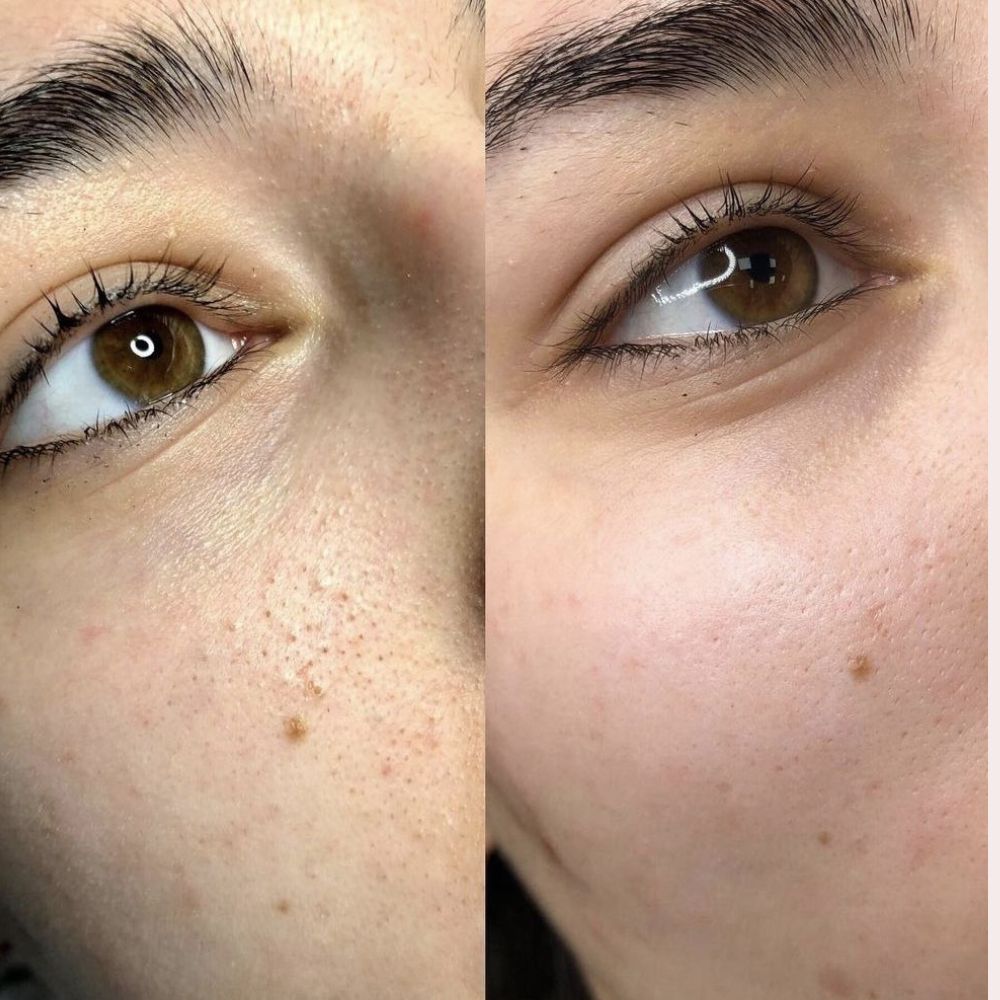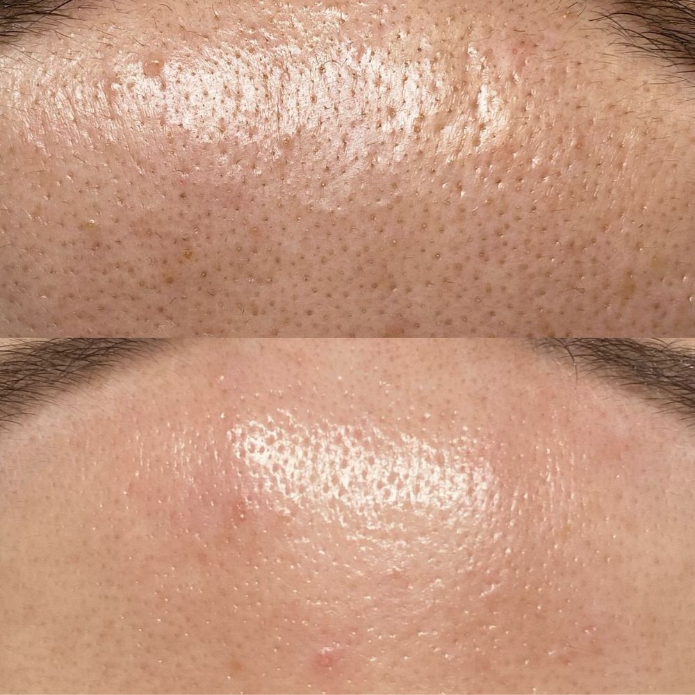 Ont observé des pores moins visibles et un grain de peau visiblement plus net